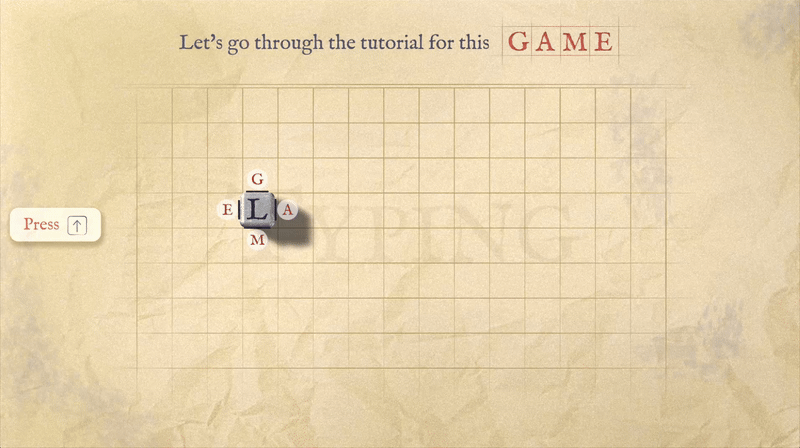 Typing... is a simple WASD game inspired by movable type. It asks the player to print letters by rolling a die to solve the word puzzles.